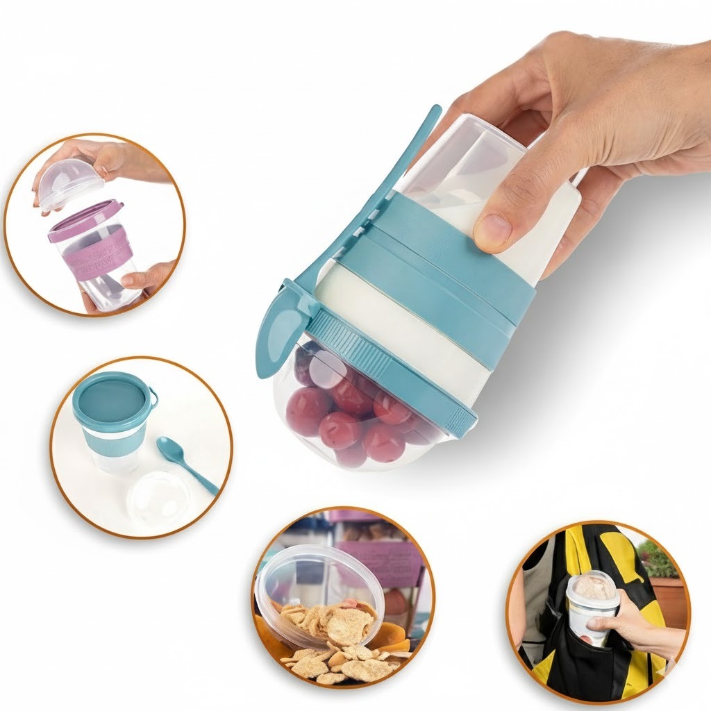 Si alguna vez intentaste llevar yogur, frutas o cereales al trabajo y terminaste con todo mezclado, derramado o hecho un desastre, no estás solo/a.